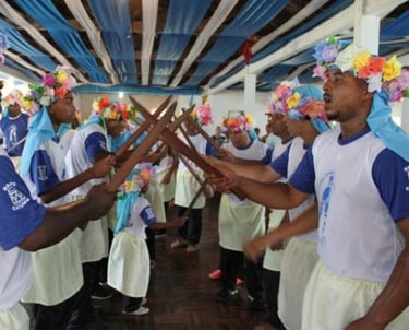 A Origem Lendária: A tradição narra que o culto à Virgem do Rosário teve início após um evento miraculoso: um clarão provocado pela santa teria impedido que dois escravos fugitivos fossem capturados e estraçalhados pelos cães dos capitães do mato. Em agradecimento e reconhecimento, a Virgem teria solicitado que seu culto fosse realizado com versos e batuque, dando origem ao folguedo.